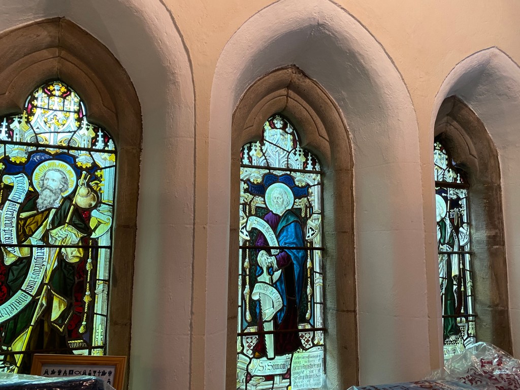 Some time ago I photographed and posted pictures of the church windows at St James. On 4th July I took photos at St Annes and have now found time to post them…so here they are. Some beautiful stained glass and look out for the beautiful altar flowers and a covid secure sidesman! NOTE. Click on the title to see all of the photos.
